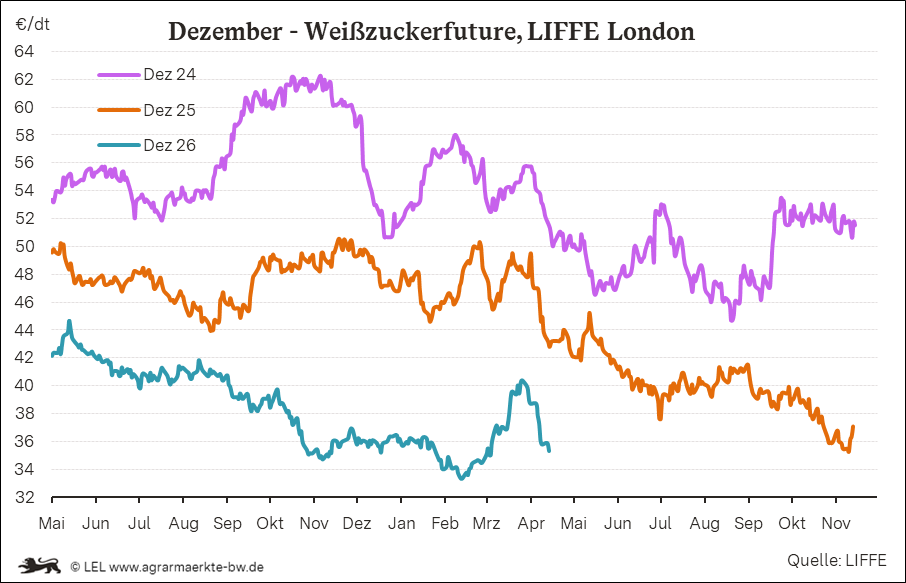 Liffe Zucker €/dt Dezemberkontrakte