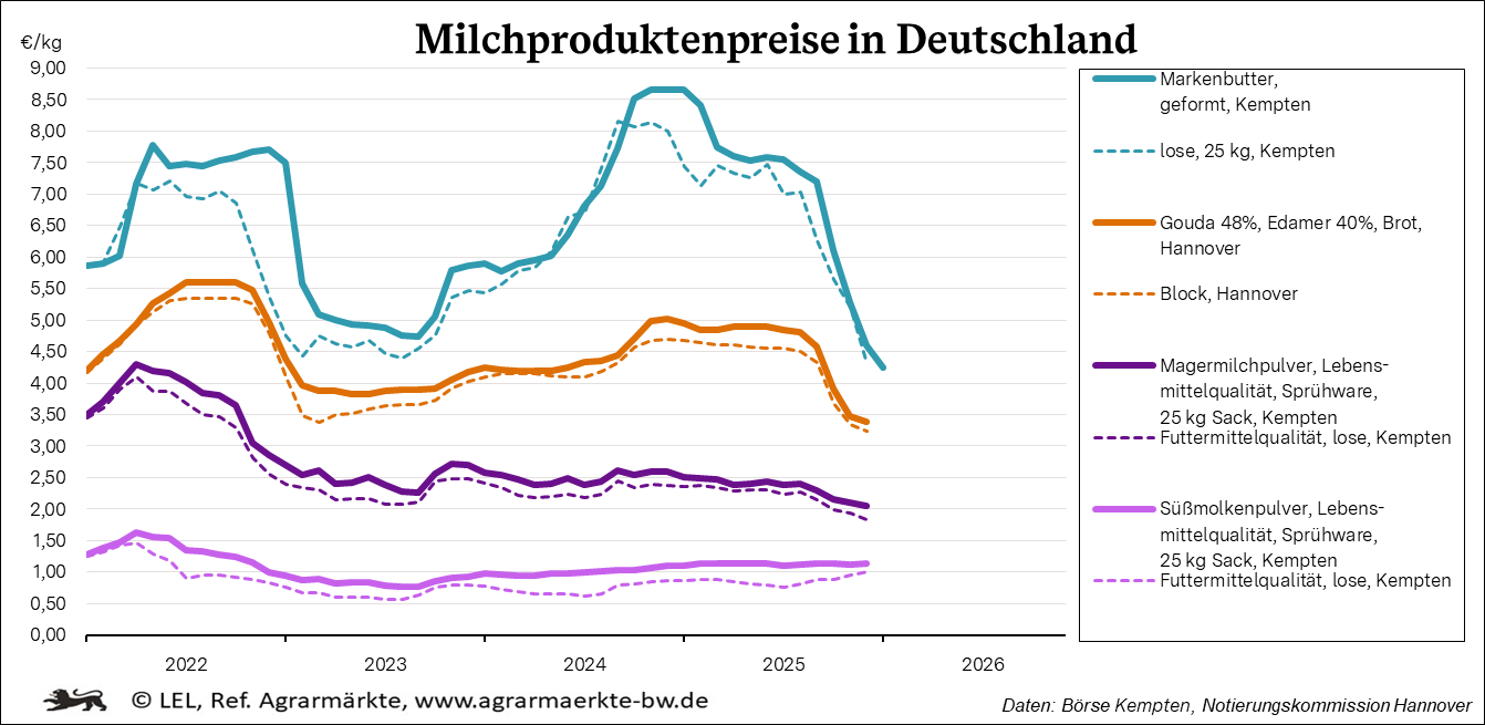 In Deutschland fiel das Rohstoffaufkommen seit Oktober erneut umfangreich aus. Das hohe Milchaufkommen ist für die Saison untypisch.