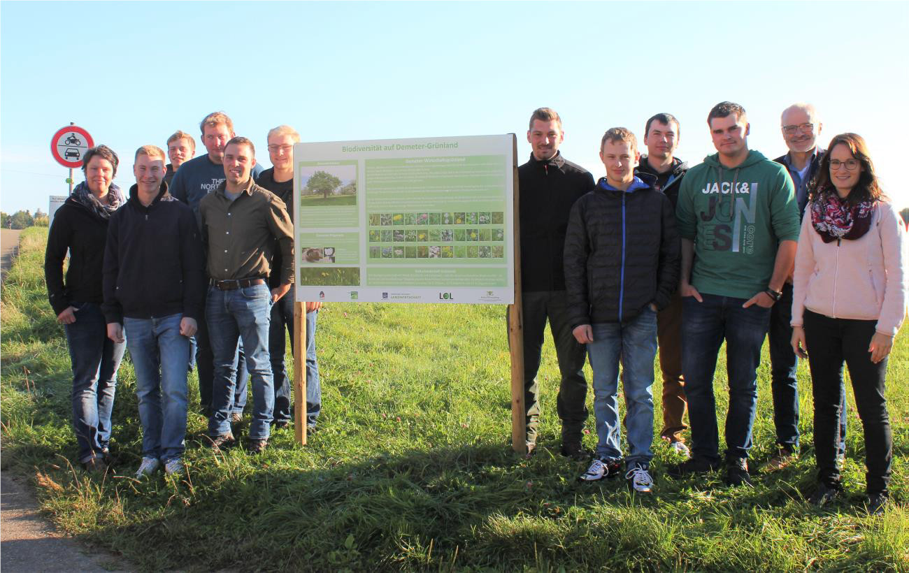 Im Sommer 2021 haben die Studierenden Tafeln zur Biodiversität auf dem Grünland erstellt. Diese sollen anschaulich darstellen, wie die Landwirtschaft zur Biodiversität beiträgt. Hierfür haben die Studierenden mit Hilfe der Tablets Fotos von Kräutern und Blumen auf den eigenen Flächen gemacht sowie die Flächen bonitiert und Pflanzenarten bestimmt. Auch sind sie auf die Lebensräume von Tieren eingegangen, die in unmittelbarer Nähe ihrer Wiesen beheimatet sind. Insgesamt haben die Studierenden sechs Schilder erstellt. Die einzelnen Schilder stehen im Ostalbkreis auf den Gemarkungen Spraitbach und Lauchheim, im Landkreis Heidenheim auf der Gemarkung Giengen sowie im Landkreis Göppingen auf der Gemarkung Schlat.