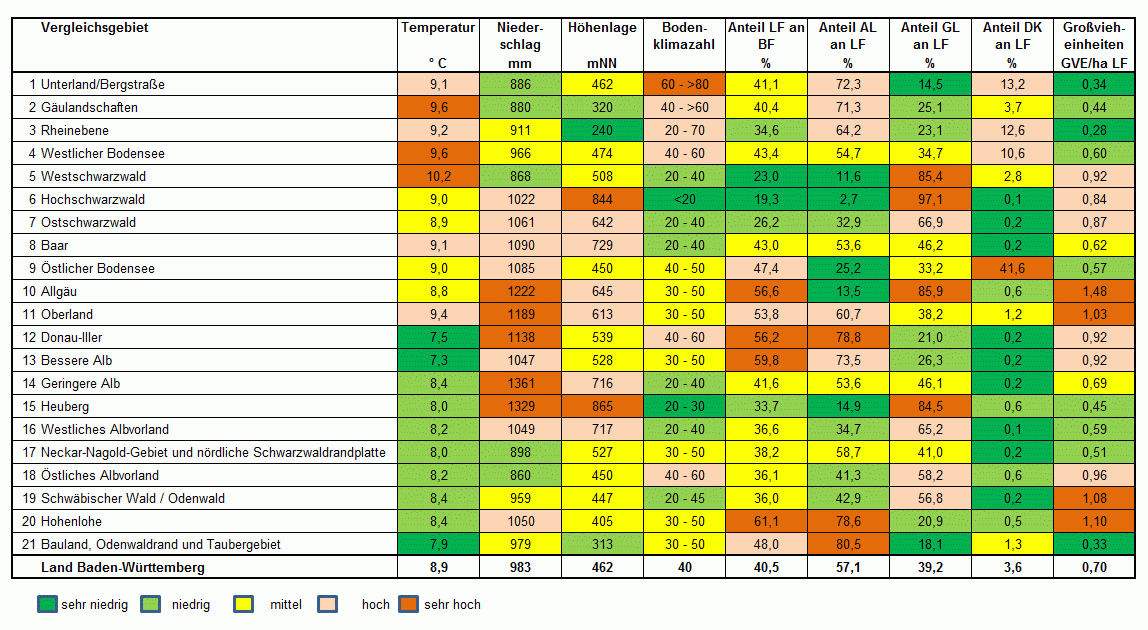 In der Gliederung des Landes Baden-Württemberg nach Vergleichsgebieten ist das Land nach Gebieten gleicher natürlicher landwirtschaftlicher Ertragsfähigkeit unterteilt, wobei geologische, topographische und klimatische Gegebenheiten den Ausschlag gaben.